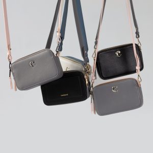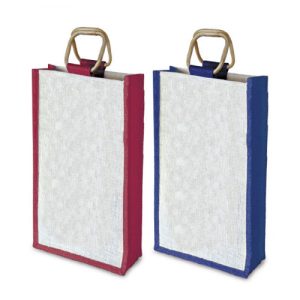 Cordões de algodão cru, com argolas de metal reforçadas e distintivo algodão reciclado na etiqueta.