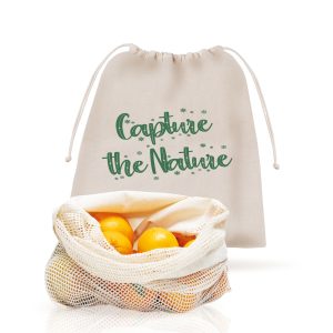 Saco mochila de cordões de linha nature, em algodão reciclado 140g/m², com alças de transporte de 70cm a condizer.