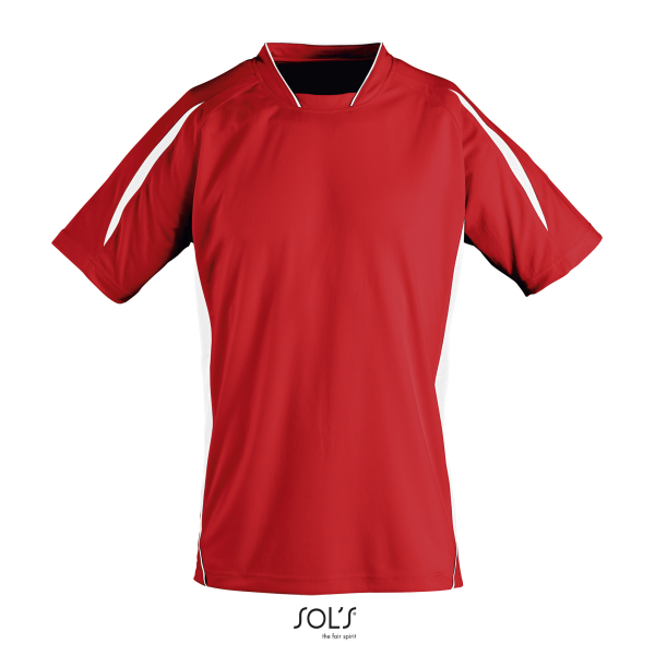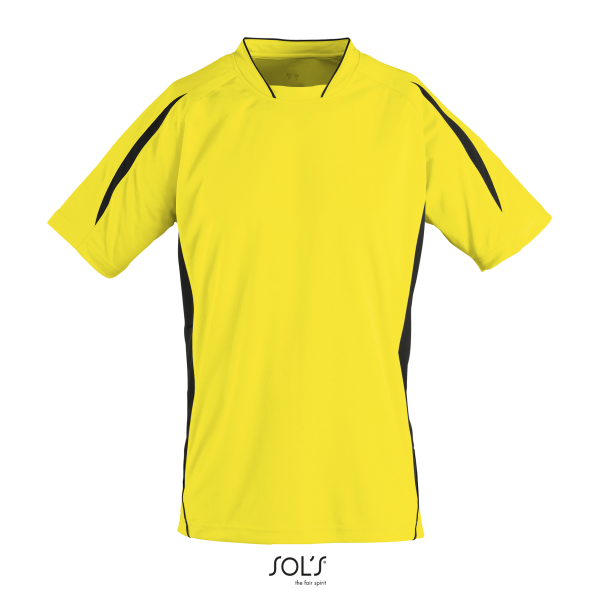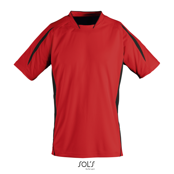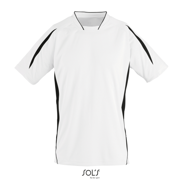 Grandes aplicações em malha de rede nas laterais e nas mangas, assegurando o controlo da transpiração