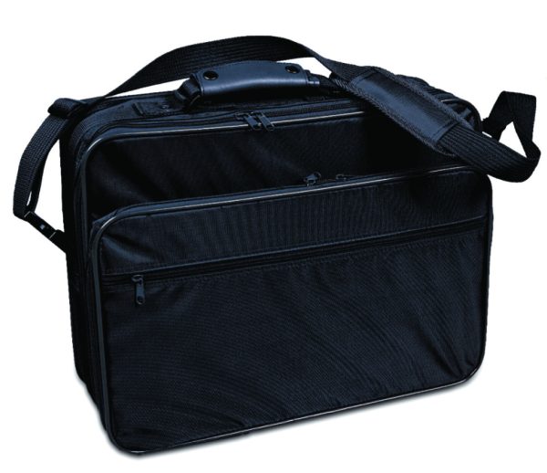 Pasta. 47 x 36 x 12 cm Disponível em preto e azul.